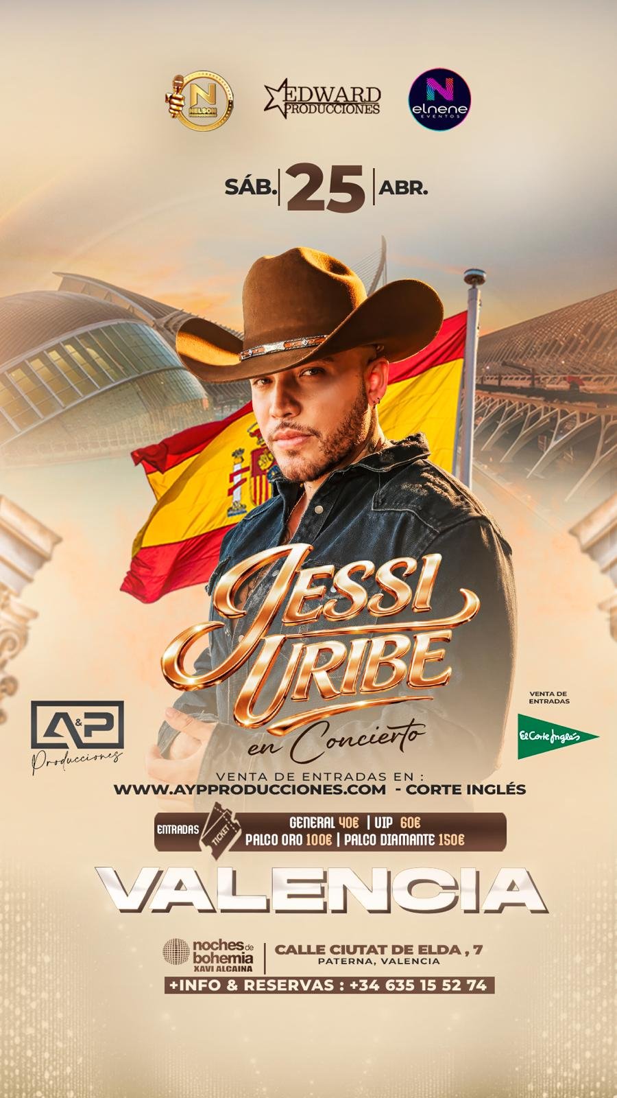 Prepárate, Valencia! Este 25 de abril, Jessy Uribe llega con todo su sentimiento a nuestra ciudad. Una noche llena de música popular, emociones a flor de piel y todos sus éxitos. No te pierdas esta velada única. ¡Las entradas ya están disponibles en nuestra web