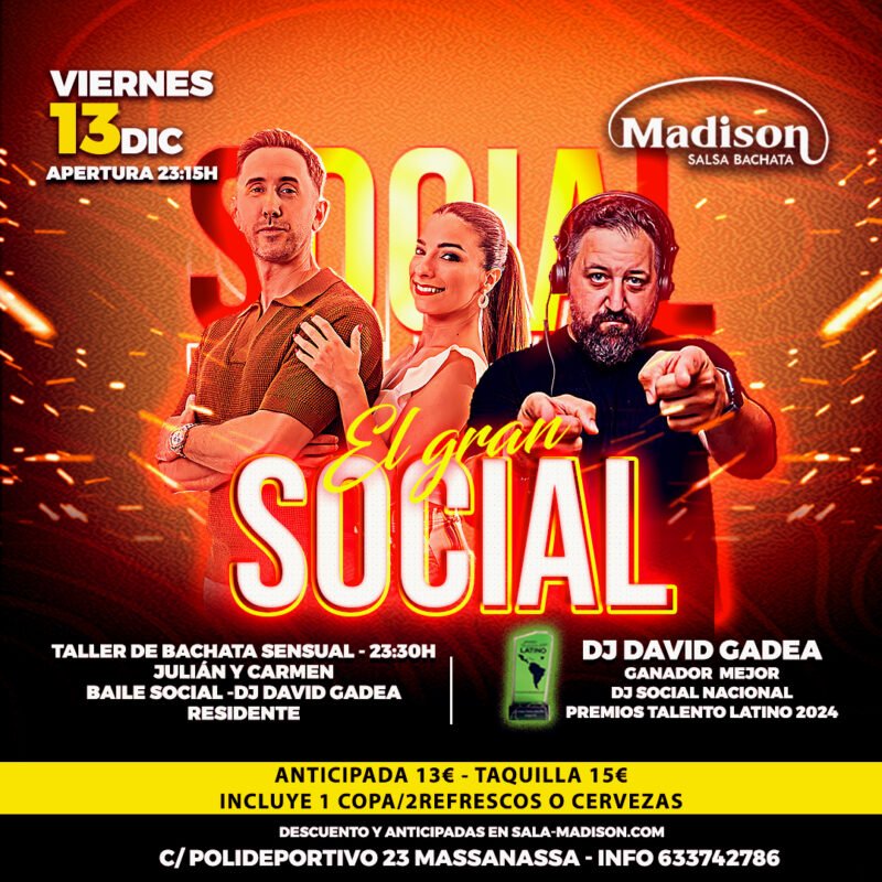 Este viernes 13 de diciembre, prepárate para El Gran Social en Sala Madison 💃🕺