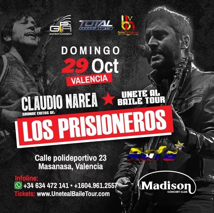 Claudio Narea miembro fundador de esta Iconica Banda, despues de la exitosa gira realizada por Colombia, Peru, Ecuador, Estados Unidos y Canada.. Llega a Europa a brindar un concierto inolvidable para los amantes del rock en español, en el que disfrutaremos de éxitos como “El baile de los que sobran”, “Tren al Sur”, “Sexo”, “Muevan las industrias” , “Por que no se van”, “Pa, pa, pa”, “Para mar” y todas las canciones que marcaron la generación de los 80´s y 90´s .