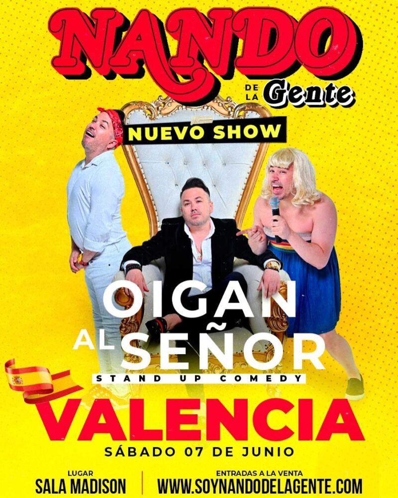¡Prepárate, Valencia! El reconocido comediante venezolano Nando de la Gente llega a nuestra ciudad con su nuevo espectáculo Oigan al Señor como parte de su Gira 2025.