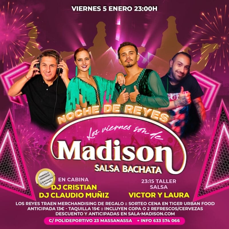 ¡Celebra una Noche de Reyes inolvidable en Madison Salsa Bachata el viernes 5 de enero a partir de las 23:00h! 👑🎉