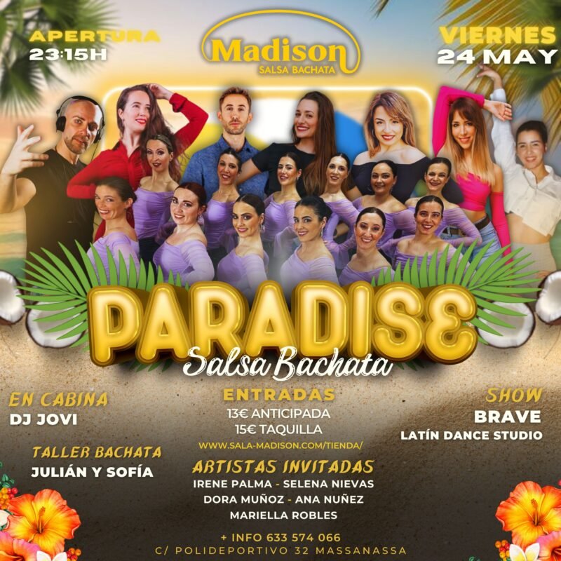 🌴✨ ¡Prepárate para una noche de ensueño en nuestra fiesta Paradise en Madison Salsa Bachata! 🎉💃