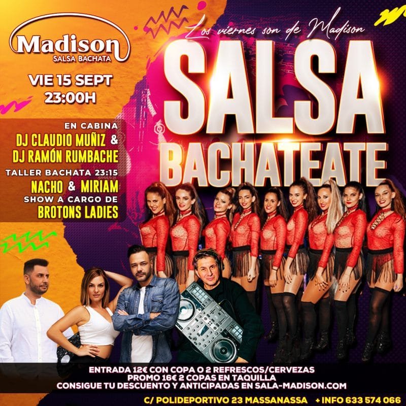 Prepárate para una noche de puro ritmo y diversión con Madison Salsa Bachata. 🎶
