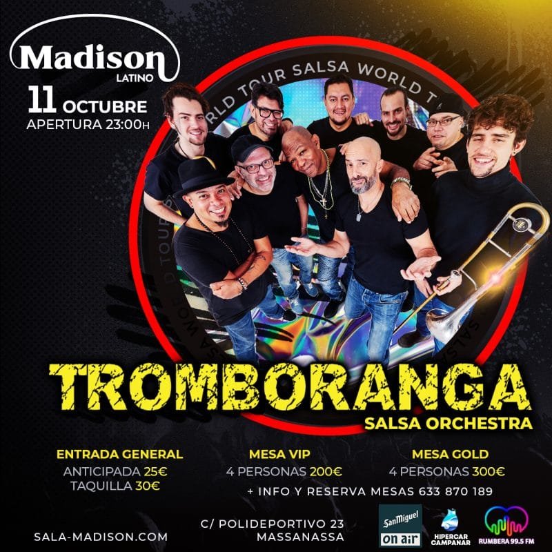 Consigue tus entradas anticipadas en nuestra web: https://salamadison.com/entrada/entrada-general-tromboranga/ o en nuestros puntos de venta