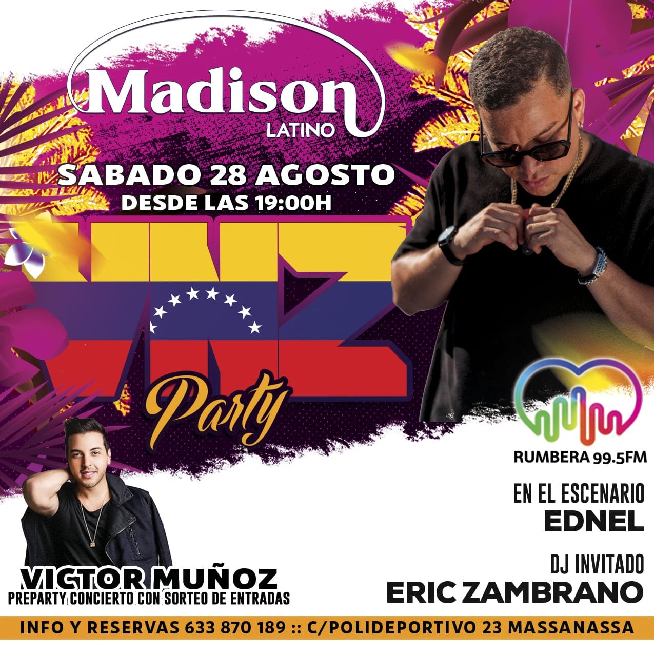 VNZ Party (28-08-2021)28/08/2021Victor Muñoz (04-09-2021)04/09/2021 Published by admin at 31/08/2021 Categories Uncategorized Tags Share0 adminRelated posts19/07/2022Hello world!Read more18/12/2021Palladium (18-12-2021)Read more07/12/2021Parranda de Navidad (07-12-2021)Read moreComments are closed.
